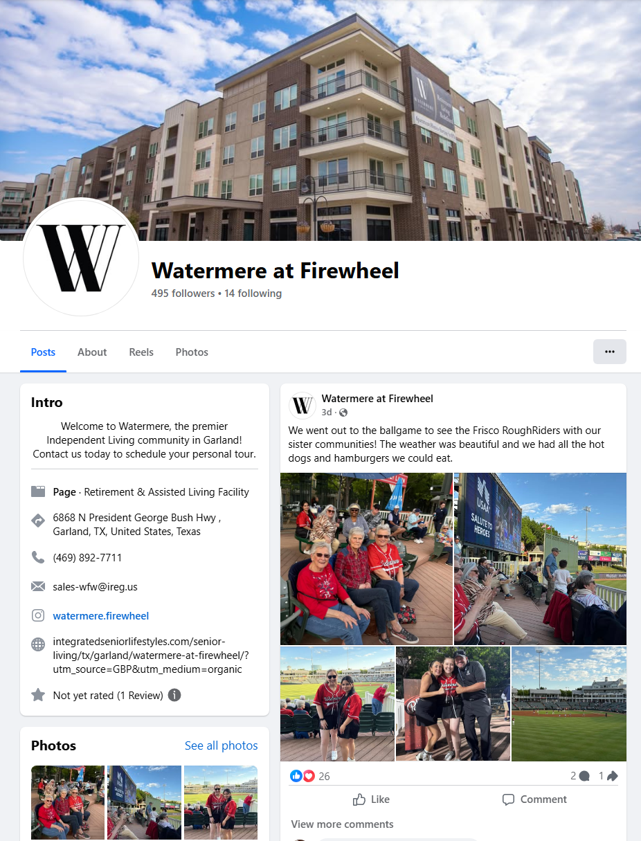 Managed digital marketing, web content, and social media across 30+ senior living and multifamily properties. Promoted to Social Media & Brand Reputation Manager in December 2025.